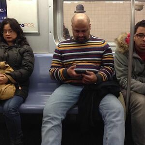 He was in front of me for the line to board the plane. Actually his band called him in to the line in front of me. He turned around and asked if it was ok that he get into the line in front of me.