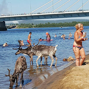 A Very Hot Day Today In The Center Of Rovaniemi In North Finland (Afternoon The Meter Was Showing +32°C). At The Beach, People Weren´t The Only Ones, Who Needed A Little Cooling