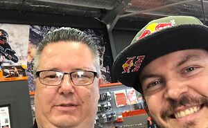 2 time Dakar winner Toby Price. Came into my motorcycle shop to buy parts. Spent over an hr talking to everyone and packing pics. Deadset legend. Also Tony Iommi in Sydney Airport. Really laid back and quiet.