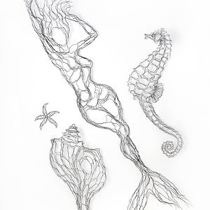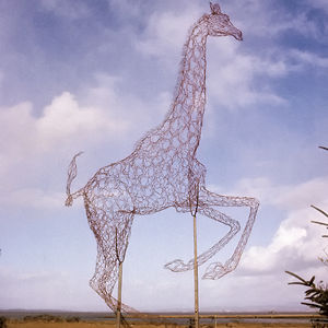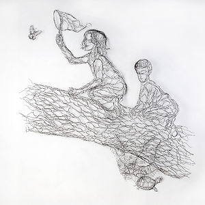 Among the world's premiere wire sculptors, Elizabeth Berrien has been pioneering with wire since the 1960's. Her distinctively expressive, museum-quality works are collected worldwide. Site specific commissions are in airports, hotels, restaurants, parks and zoos... most recently, a set of 27' wire murals for Zengo Dubai, within Le Royal Meridien resort.