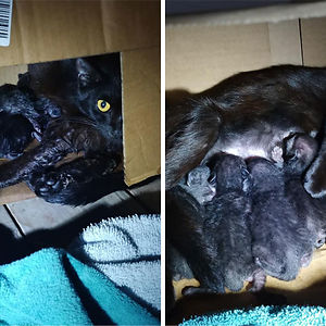 My House, Not My Cat. Came Home Yesterday To Find That Santa Left This Black Kitty On My Balcony... Who Then Proceeded To Give Birth To 7 Little Beans. 7 Black Cats Born On Christmas, That's Gotta Be Lucky