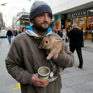This Homeless Man's Rabbit Was Thrown Over A Bridge By A Passerby And He Immediately Jumped Into The River To Save Her. He Won An Award, Was Given Animal Food And A Job, And The Passerby Was Charged With Animal Cruelty