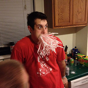 So My Friend Got Drunk And Bet Me He Could Fit An Entire Box Of Straws In His Mouth. Did Not Disappoint