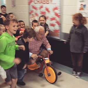 My Dad Challenged The Students At The School Where He Is The Principal To Read A Combined 1,000 Minutes. The Reward Would Be Getting To Push Him Down The Hall On A Tricycle While He Wore Mismatched Clothes Inside Out