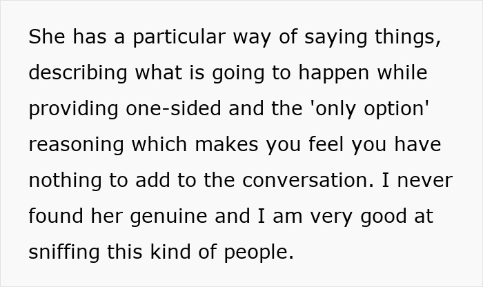 Meanwhile, the sister-in-law pulled the same moves outside her marriage, too. She organized family plans without checking in, usually using the OP’s husband as a proxy. She would go through the person most likely to comply, and completely sidestep the one who might push back. In most cases, the OP’s husband was the one likely to comply, as he hated conflict.