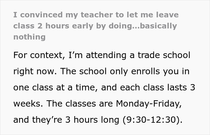 “I convinced my teacher to let me leave class 2 hours early by doing…basically nothing” – this internet user took to one of Reddit’s most popular communities to tell its members a tale of how they maliciously complied with their teacher and got to leave early after completing their exam. The post garnered nearly 5K upvotes as well as 131 comments discussing the situation.