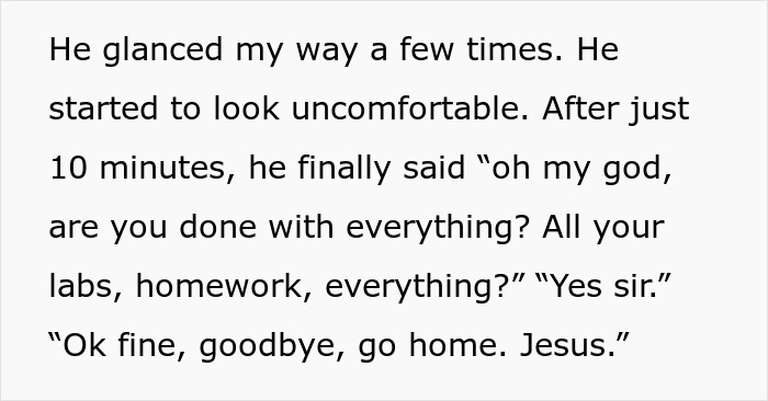 The thing is, their teacher, or as they call him – “Mr. D,” insisted that the pupil stay until 12:30. However, instead of browsing the web for several hours, the Redditor decided to mess with the man until he, well, caved in.
