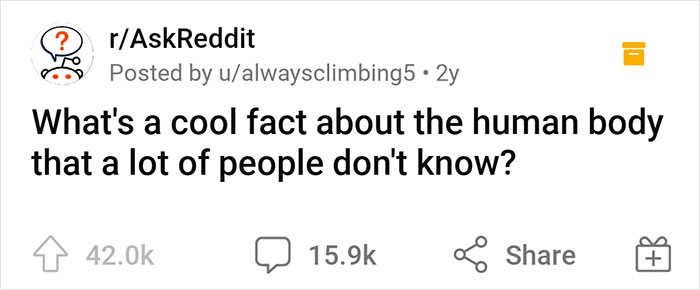 That’s why one Reddit user, Alwaysclimbing5, reached out asking others to share cool facts about the human body that a lot of people don’t know. Readers chimed in with fascinating information, including anything from how we can be born with extra ribs to how sensitive our noses are to the scent of rain, so we’ve gathered the most interesting responses down below for you to read, as well as an interview with Dr. Scott Ross about some of the craziest things he knows about the human body. We hope you'll enjoy your daily dose of biology and that you learn something new about yourself while you're here. Don’t forget to upvote the facts that really blow your mind, and then if you’re interested in finding out even more about our bodies, check out this Bored Panda piece next.