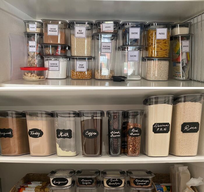 Review: "Would definitely recommend these. We buy in bulk and store rice, flour, sugar, pasta etc in these and have never had an issue. Seal great. Very easy to open/close. Have not stacked these containers. Color is great. Love the clear with dark lids. Fit great on the shelves we have. Great quality! Would definitely recommend to anyone looking for storage containers on a budget." - Rita Blackburn