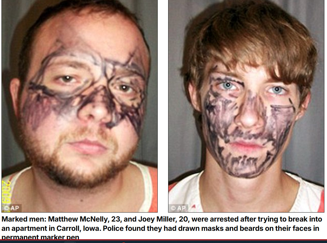 Not a cop but read an article about 2 people caught after they attempted a robbery by sisguising their faces with a permanent marker