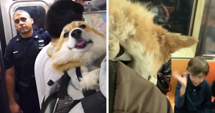 One could argue that the little 3-year-old corgi dog, Maxine, has become an unofficial mascot of sorts for the New York subway. She inspires cheerfulness and good vibes wherever she goes. “I love seeing how happy she makes everyone, especially on our early-morning or after-work commutes when people aren’t so thrilled to be shoved into a train full of strangers,” this cute dog’s owner told Bored Panda. Being perceptive, he noticed that and started filming the crowd’s reactions as they commuted.