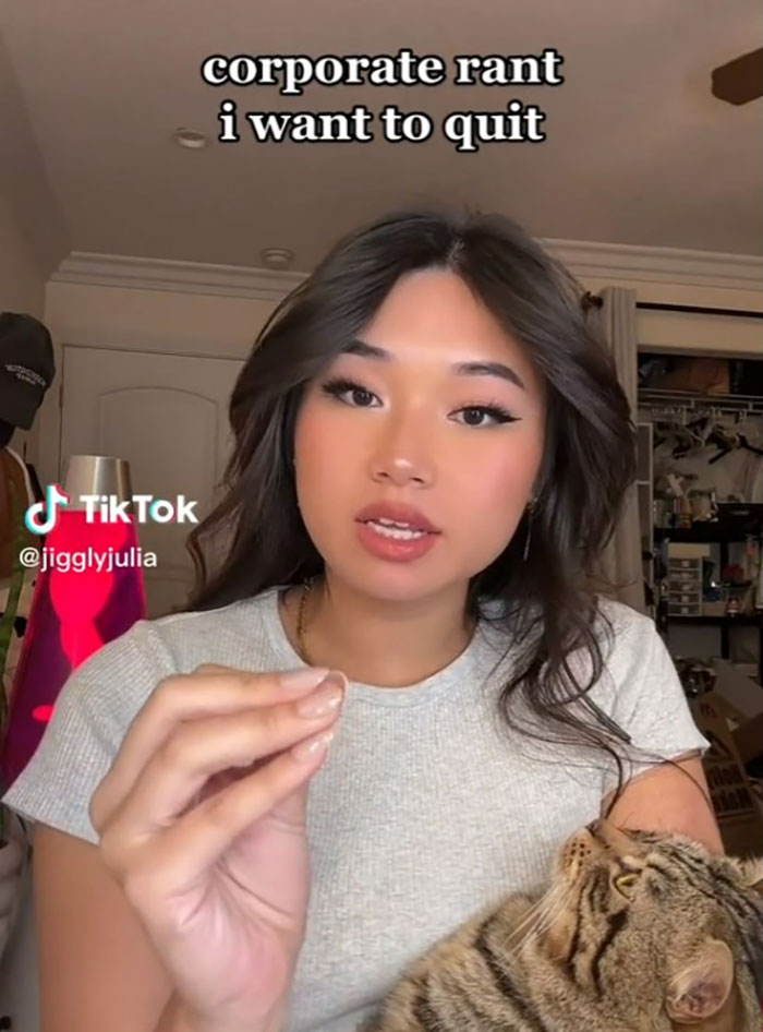TikTok creator Julia Huynh has had her 9 to 5 corporate work for only 6 months, but it has left her so drained she wants to quit already