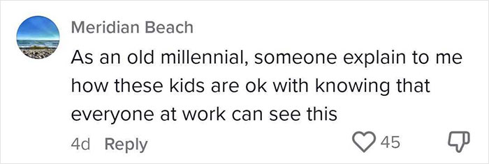 And you don't find it messed up that complaining about something that EVERYONE complains about when bossman isn't around can get someone fired? And these are basic complaints that aren't really damaging, mind you. She's not shaming anyone and she's not talking c**p about her actual employer. Her video is stress relief if anything. Trust me, I've said much worse about my job off camera. And yet, by your own words, she should get fired for it. And yet, you don't see a problem with it. Cool, boomer.
