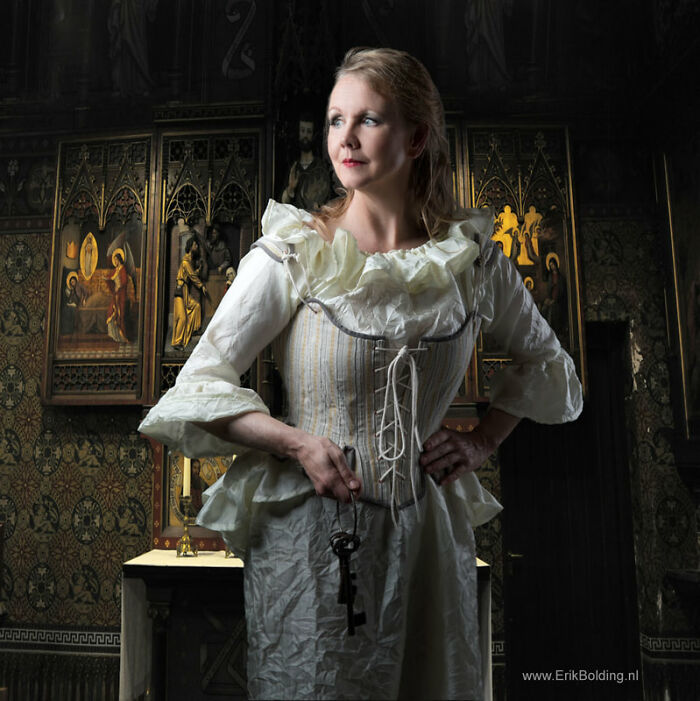 Marga van der Vet is a model, blogger, and seamstress. Bored Panda got in touch with her to find out more about what she does. Marga shared that she started making Chanel-style jackets for herself and reviewing sewing patterns a few years ago. She also enjoys creating medieval, cosplay, and historic costumes. "I love working together with photographers and creating extravagant clothes for model shootings," she added.