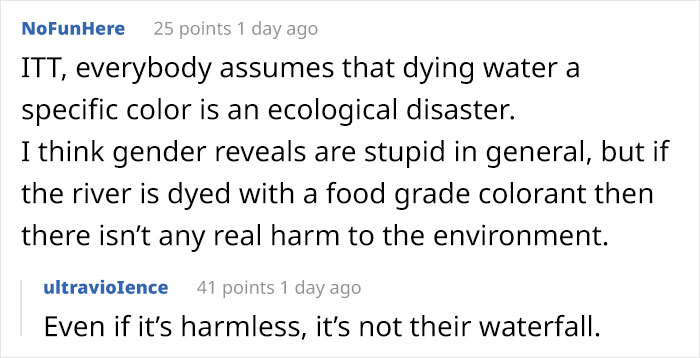 Couple Thought It Was A Good Idea To Dye A Whole Waterfall For Their Gender Reveal Party