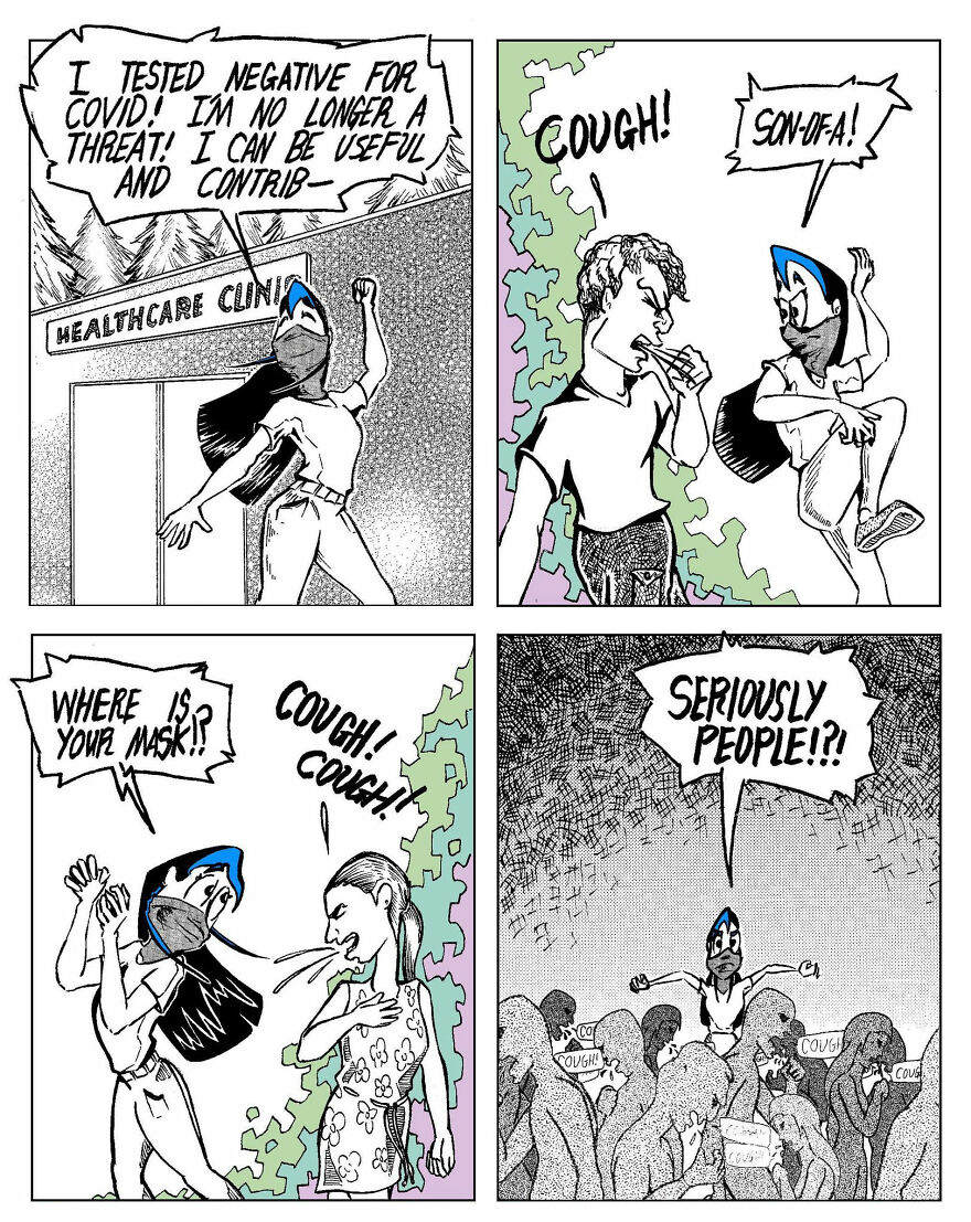 If you enjoy these, please feel free to read the whole Bleeding Ink series, Covid and non-Covid-related, at the comic's website. Or you can follow all of my work, comics, and film on my Instagram.