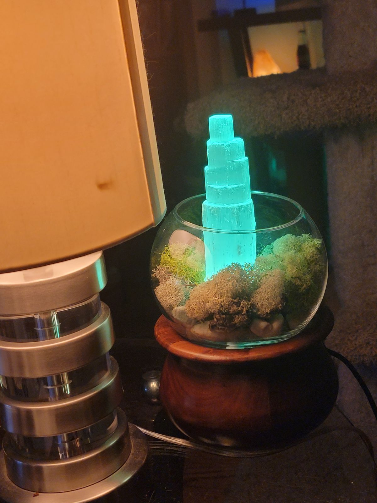 I'm sure no one cares, but I made a weather crystal display that changes color based on the temperature outside which it gets from the internet. Cooler temperatures =cooler colors and warmer temperatures = warmer colors. And when it's snowing or raining, it pulses slowly to let you know at a glance. IwTSV4r.jpg