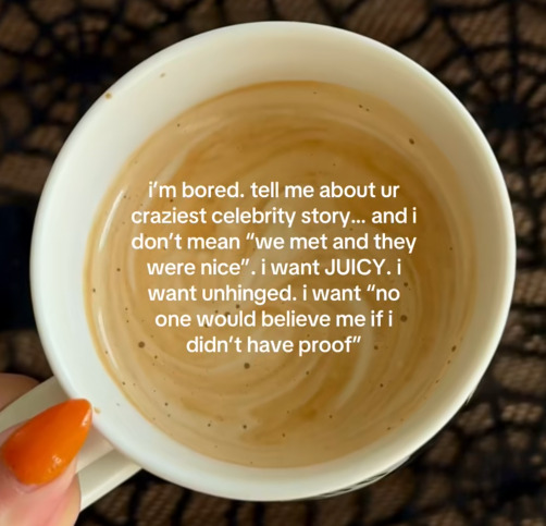 This isn’t even juicy but funny. My parents saw Steven Tyler shopping at world of Disney and my mom went up and said “I LOVE YOU DUDE!!” And he said “HELL YEAH BABY!” Then did a high ten and literally bear hugged her 😫🥹