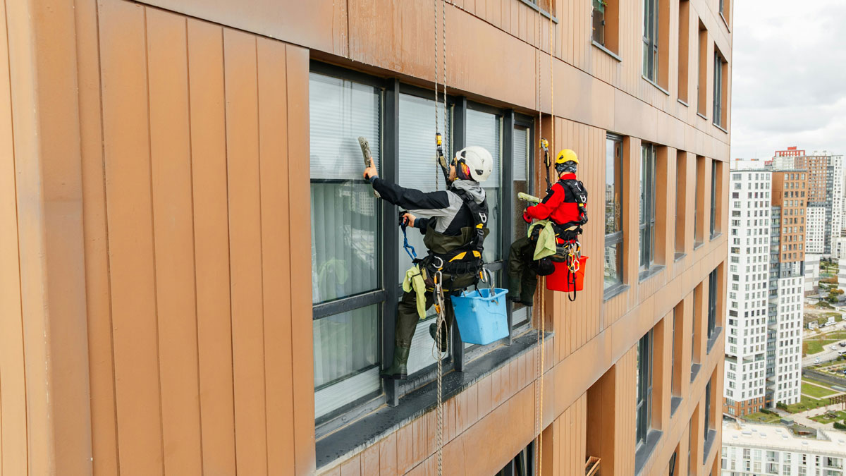 Not a skyscraper cleaner, but the person on the other side of the window. I was using a single occupancy restroom on the 22nd floor of a building that had a floor-to-ceiling glass window along the side of the toilet. Weird, I know. Anyways I was wearing a romper, so sitting there in just a bra, with my romper around my ankles. I saw the window washer and was a little startled but thought the windows were tinted it was fine. Alas, we accidentally made eye contact as I was standing up to wipe. Clearly tinting does not work up close.