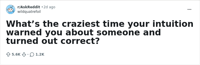 Ignore it at your own peril: That's the message from dozens of people who have been sharing stories about the craziest time their intuition warned them about someone, and it turned out to be correct.