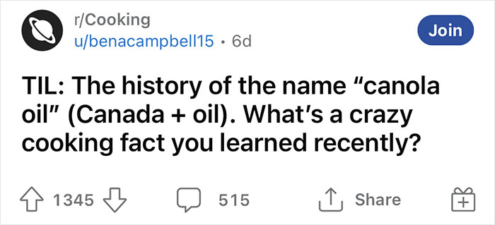 If you’ve got an appetite for fascinating culinary information, we’ve got the perfect list for you to devour. Below, you'll find some of the wildest cooking facts Redditors have recently shared, as well as an interview with Bintu from Recipes Recipes From a Pantry, so bon appétit! And don’t forget to upvote the tidbits of information you can’t wait to store up the sleeve of your chef’s uniform.