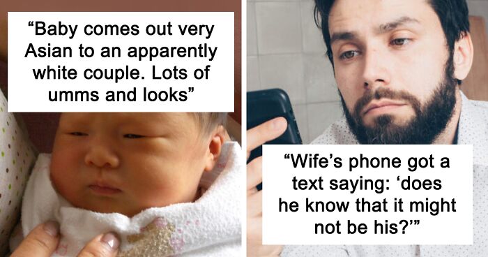 I was once present at the birth of a very white baby to not white parents. The parents spoke a different language to staff and there was this awkward silence while staff tried desperately not to exchange eye contact or stare at the father for his reaction. After a while, it was obvious that the father either hadn't noticed or didn't care, as he looked delighted and was chatting to the mother happily.