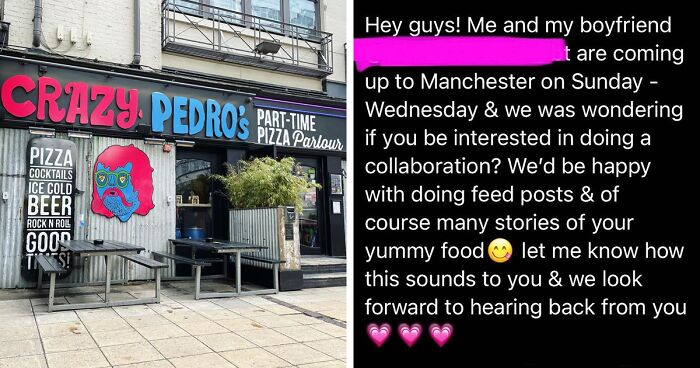 These types of exchanges are very usual. Actually, that’s the whole point of influencers: they influence their followers to buy something. Furthermore, it’s not the first time that the pizza bar is receiving such a request. A spokesperson for Crazy Pedro’s, Nick Coupland, told Bored Panda, “We have received a high volume of these in the past – it’s not something we’ve ever really done though however!”