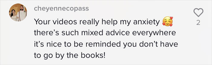 I think it's kind of sad that most of her 'crazy ideas' are simply common sense. Your child refuses to eat dinner? No big deal, they'll be hungry soon enough. Your child won't sleep at your allotted sleep time? Change the bedtime. Easy. But it seems that parents these day are so uptight about being the perfect parent to the perfect child that the common sense has left & it takes this woman to say it's all ok on TikTok to reassure them, which is nuts! It is absolutely ok to not sign your child up to every extracurricular activity possible. You don't have to be SuperMom. If your child's room is a mess, don't worry, it just means they are having fun! The house does not need to be perfect, it needs to be a home with imperfect people who make mistakes. Let your kids explore & get dirty, it will do them good & help their immune system! Go with your gut instinct. And maybe stay off of social media for a while, watching fake 'perfect people will kill your confidence every time.