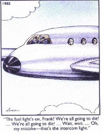 On a plane once, this batty woman was walking up and down the aisle asking everyone with a book what they were reading. When she'd asked me and got my answer, she went quiet and sat down and didn't move for the rest of the flight. I was reading a book about the Tenerife Airport disaster.