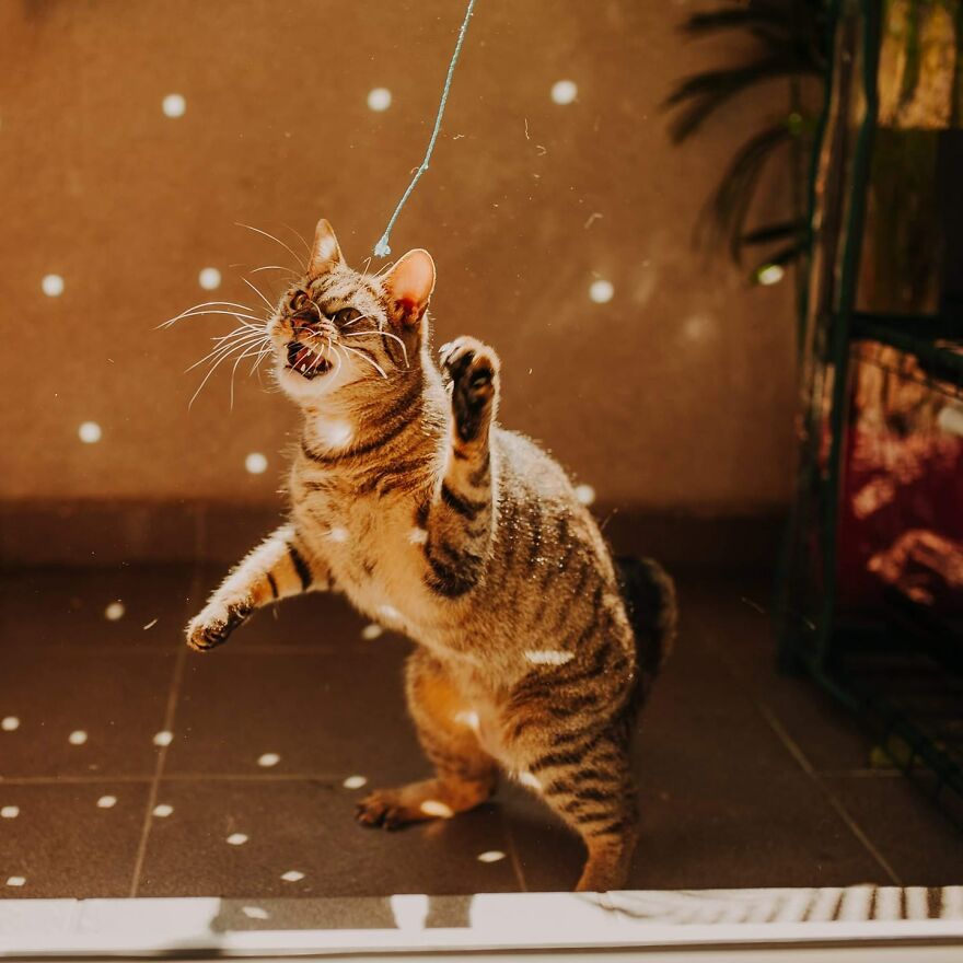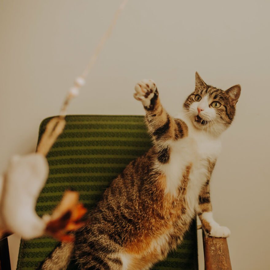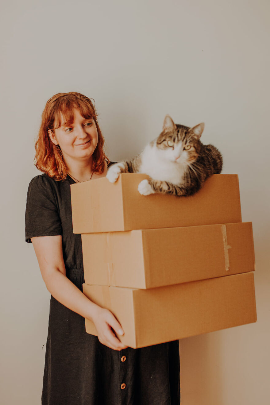 My work is constantly being on my knees and loooong minutes of waiting for the cat to show up or to do what I would like it to do. It’s not an easy job—it’s not only about petting the cat. Knowing the behavior of the cats plays a very important role. When I know more about the cats, I can prepare better for the photoshoot and avoid doing something that discourages my model to cooperate. Cats are very smart and delicate creatures! My job is a lottery—despite questioning the owners, I don’t know how the photoshoot will go. Sometimes a cat hides behind the couch and sometimes the cat that was supposed to be shy is looking for contact with me.