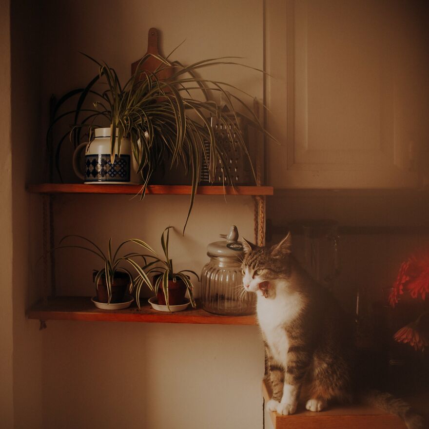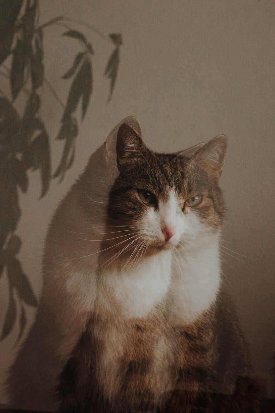 For a long time I didn’t know what I wanted to do, but when I started taking Filemon’s photos, I realized that this particular part of photography makes me calmer, quieter and I feel better with myself. The beginning of my cat photography was also the toughest moment of my life. Cat photography became a form of therapy for me. The place where nobody was telling me I’m doing something wrong, they looked fat in the photo or that they like their right side of the face more. I’ve found my confidence with cats. I also feel that I’m like them—I like being alone and walking my own paths. What I also value about them is that when they think “no,” they meow “no.”