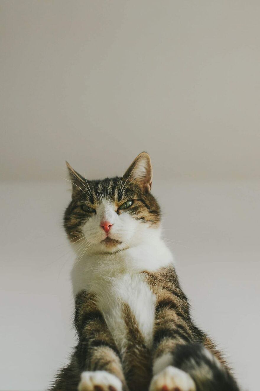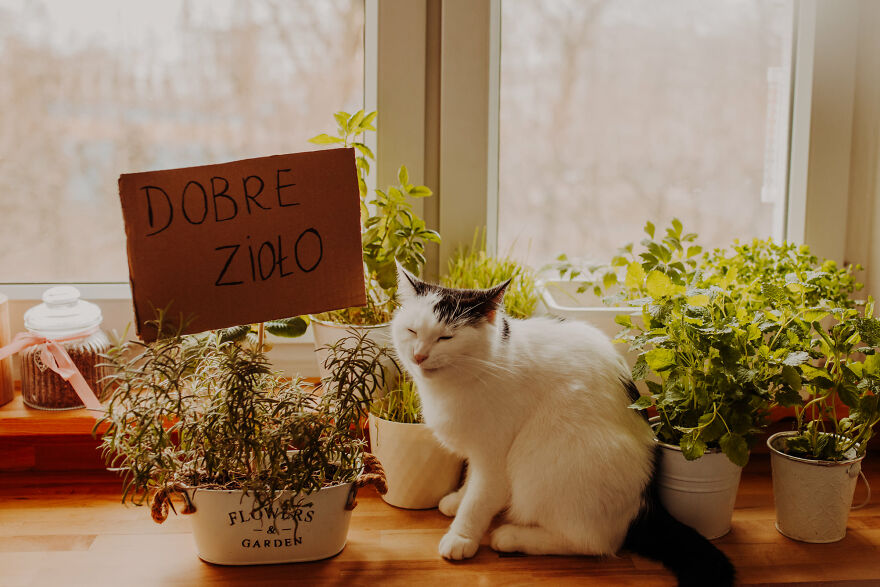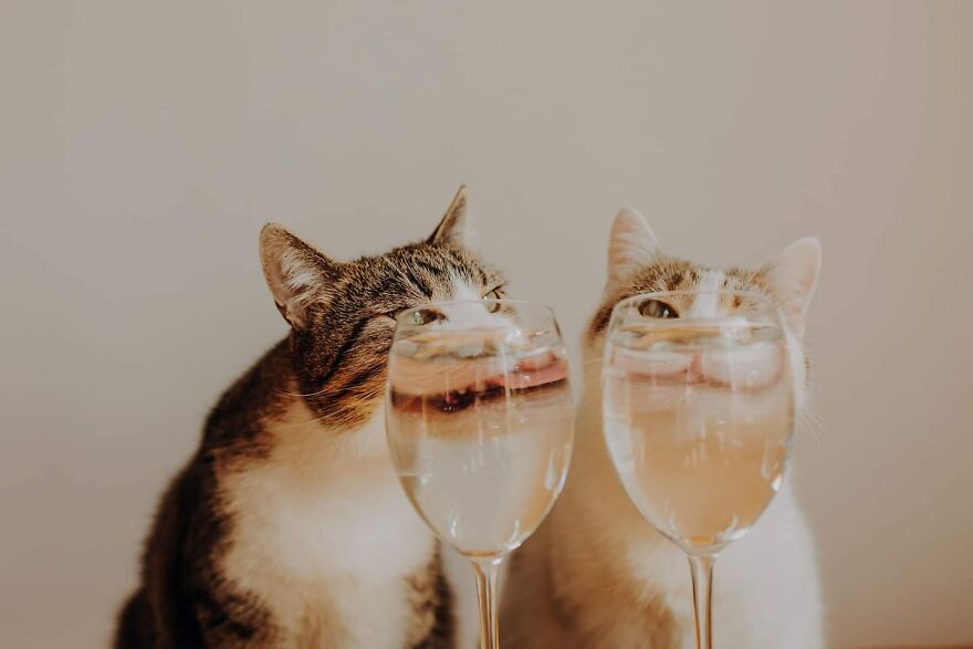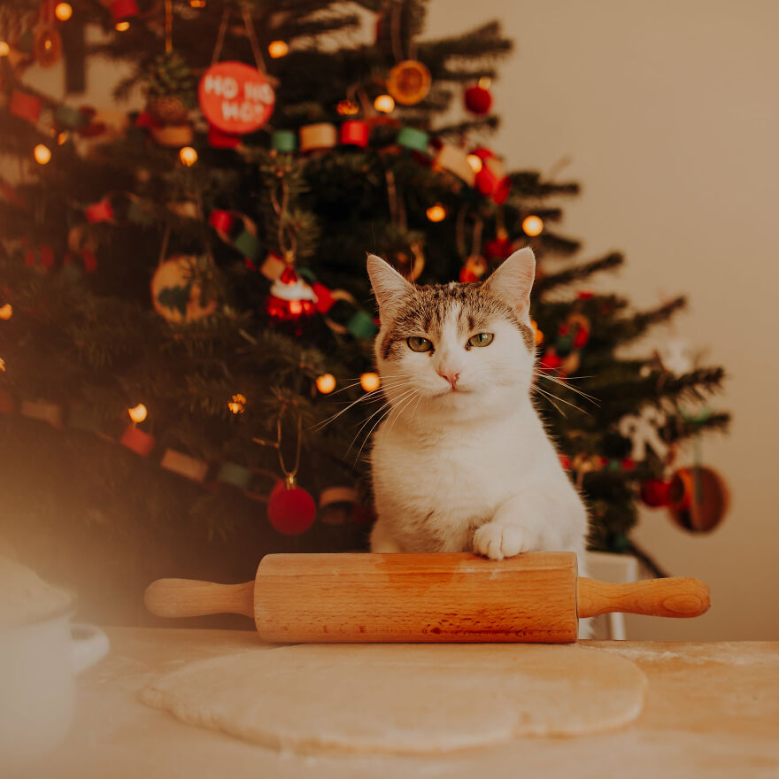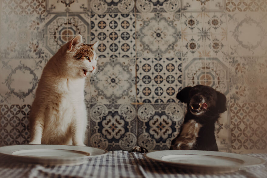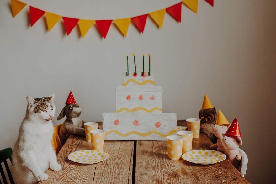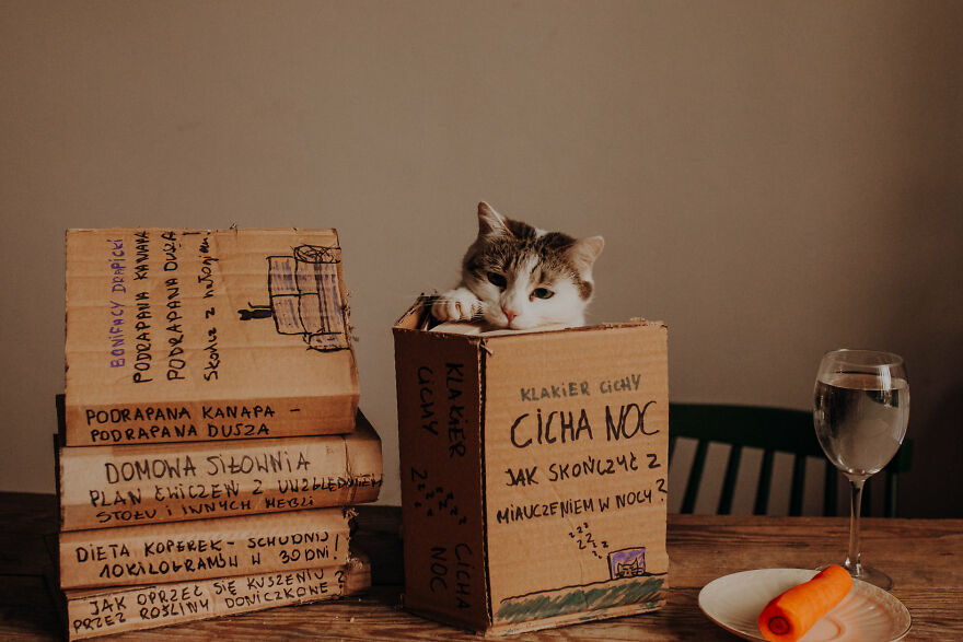 I conditioned them (in an unconscious way) since the beginning of my photos. When they sat where I wanted, I was using verbal gratitude and giving them snacks. During the photoshoots I talk a lot to them—I send them a signal that everything's all right, I’m proud of them and they are doing great. Cats read our emotions very well—when we’re frustrated, they don’t want to be next to us. Currently my cats treat the photo shoots as an element of our routine. I see that they can get pretty frustrated when they don’t get their pictures in a week. I can also see the excitement on their faces when I move around the table, cut cardboard props or bring props to the table. They usually walk between my legs and jump onto the table during the preparation—if they could they would say: how long do we have to wait, Mother? I’m trying to use treats with the best ingredients—we’re using them very often!