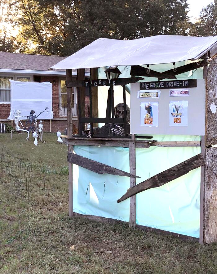 Neighbors Are Providing Free Outdoor Family Movies As Part Of Their Halloween Decorations