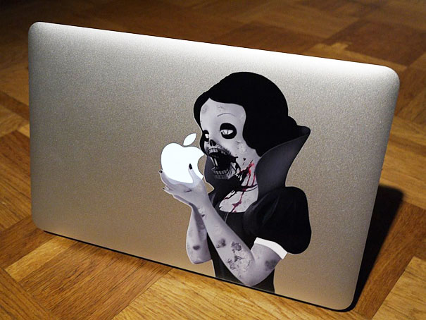 This cool design decal fits nicely on the 11″ MACbook Air, and shows what happens to the Snow White after the first bite. (buy) (non-zombie version available: here)