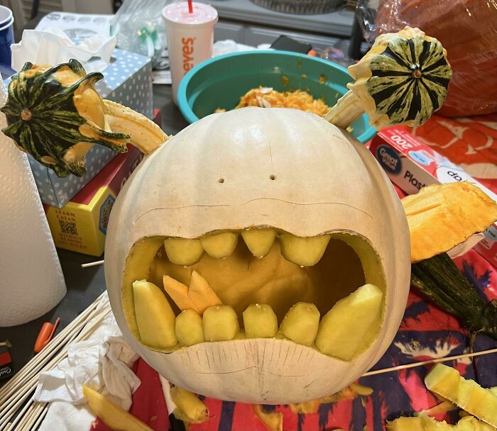 So people from all over the internet share the most interesting, cool, and spookiest pumpkins they have carved, designed, and decorated in the spirit of Halloween. So get comfortable as you scroll through, upvote your favorite creations, and be sure to comment your thoughts and ideas below.