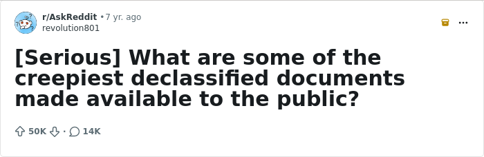 People have taken a break from the Epstein Files to discuss other declassified docs that range from creepy to downright terrifying. Bored Panda has put together a list of the most disturbing ones, and many might have you wondering: if this is what we're allowed to know, what is still being kept secret?