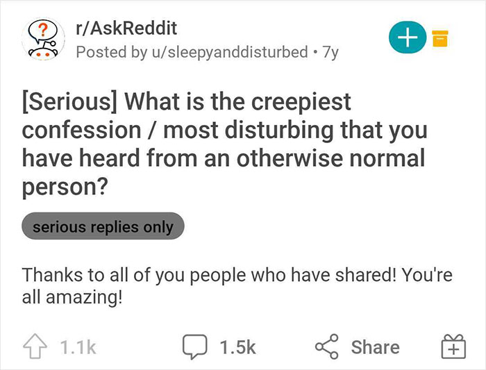 Reddit users revealed the creepiest confessions and the most disturbing things that they’ve ever heard from seemingly-normal people. We’ve collected the most powerful stories to share with you. Scroll down to read them, but be warned—many of these are not for the faint of heart and deal with some very dark aspects of humanity.