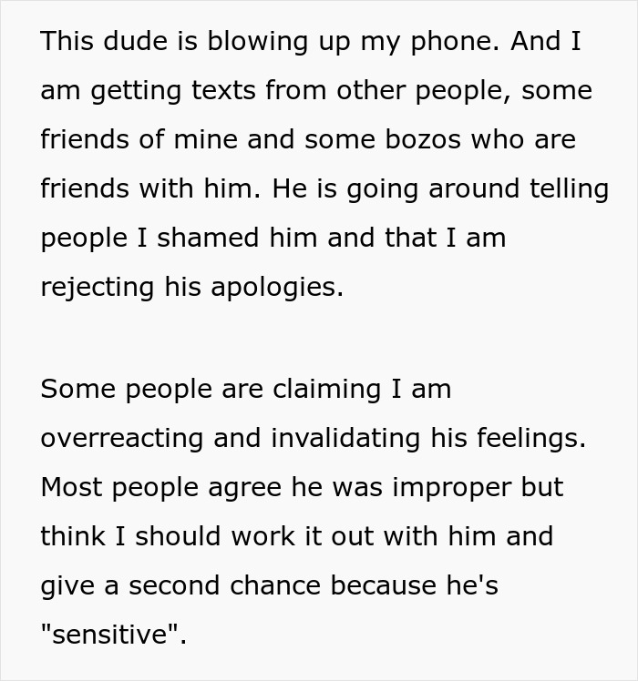 Load More Replies...Who gives a c**p about what anybody else thinks about how you react to being traumatized? Is this a thing now? Everybody and their mother texts someone who has made a decision another person doesn't like, but after only hearing the other person's side of the story?