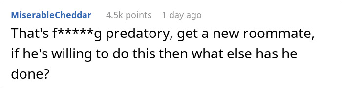Instead of apologizing for such creepy behavior, Karl doubled down on his actions and tried to gain his friends’ sympathy. He made it seem like the OP was discriminating against him for his orientation, which obviously worked since nobody knew the truth. Of all the bad roommates out there, Karl probably takes the cake just because of his confidence to do such horrifying things.