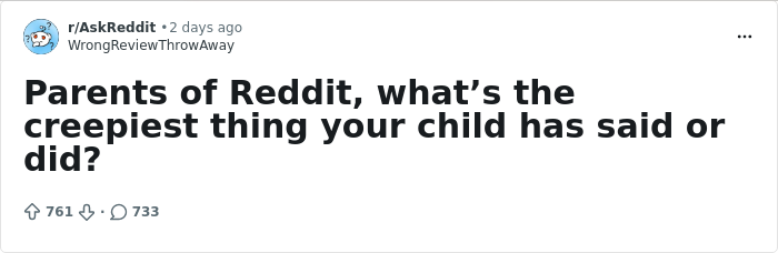 Parents took to a very open and honest online thread to share the creepiest things that they’ve ever overheard their kids saying. It’s the kind of stuff that can really weird you out and even scare you. Scroll down for their parenting stories.