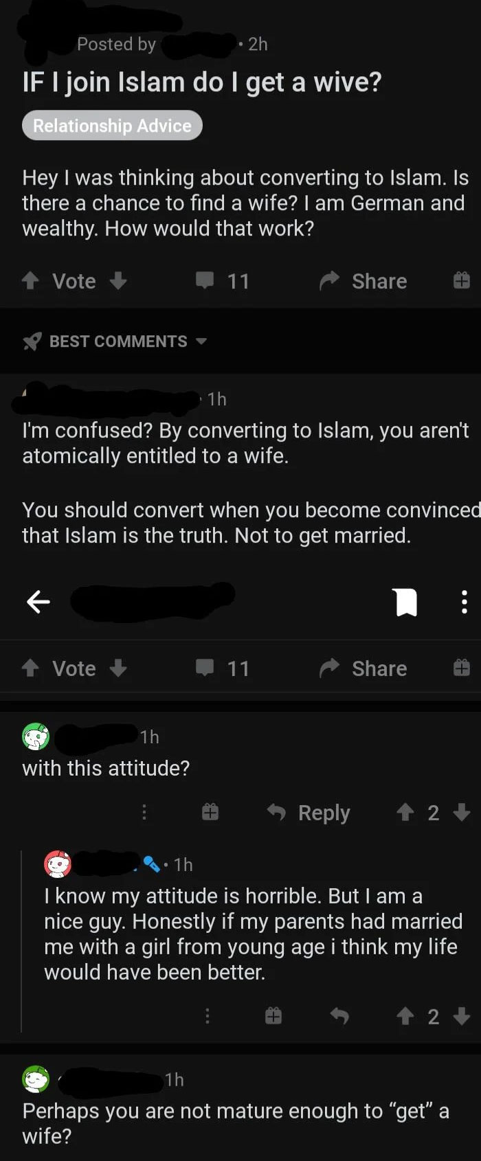 Nice Guy Wants To Convert To Islam So That He Gets His Complimentary Wife...