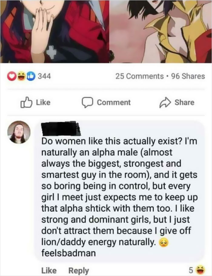 No, you're giving off incel vibes. "I don't attract them because I give off lion/daddy energy" sure buddy, that's why.