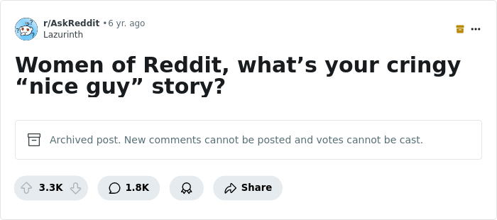 I've run into a few Nice Guys in real life, but the stories are pretty boring. Probably the most interesting story I have is from the internet.