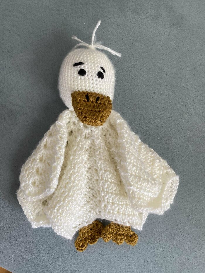 Crocheter just barely got it done before running out of yarn. Playing “chicken” means tempting fate.