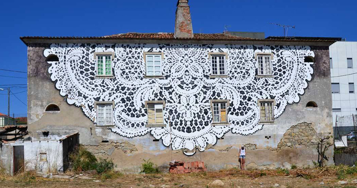 I create works that are somewhere in between street art, pottery, painting and sculpture. Most of my work consist of prints of traditional laces, made in clay or painted on the walls.