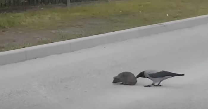 While some people are convinced that all animals are driven only by instincts and can’t feel any human-like emotion, others are convinced otherwise. After all, it’s hard to believe animals are completely soulless after the infinite amount of cute cat and dog videos most of us have seen on the internet, where pets show really human-like emotions. Of course, that could be easily explained because pets have countless opportunities to observe their owner’s behavior and mimic some of it. However, after this video of a crow nudging a hedgehog across the street went viral, people can’t stop debating whether the crow was trying to get it to safety, or whether that was a predator move.