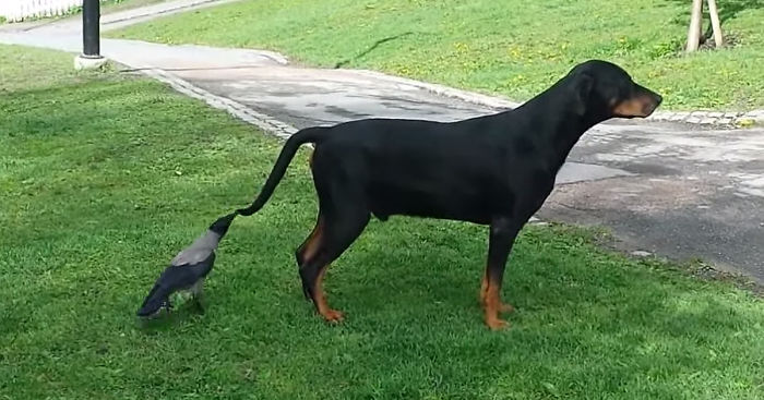 Crows (and corvids, the family that includes crows, ravens, rooks and magpies) are extraordinarily intelligent creatures, but this means that they can be devious little devils, too. One annoying and clever behavior that they’re all prone to is biting other, larger animals’ tails and backing off when they try to retaliate, making them the supreme trolls of the animal kingdom.