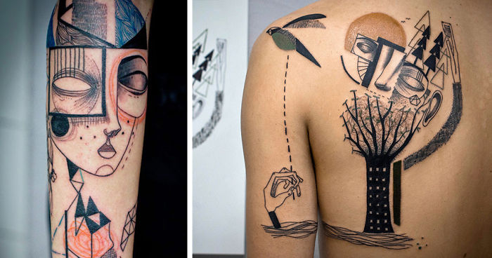 Artist Duo Creates Surreal Cubist Tattoos Based On Clients’ Stories