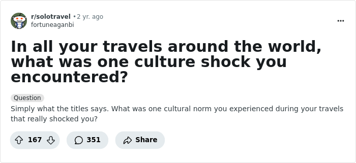 In this post, we’ve rounded up real stories people have shared about the most surprising and eye-opening cultural differences they’ve encountered abroad. Keep reading to find out which of these shocks might catch you off guard, too!
