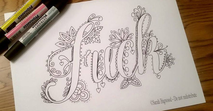 It’s no secret that lately adult coloring books have been taking over bookstores. Most of them are very detailed and sophisticated, even spiritual. But Sarah Bigwood, a 30-year-old artist from UK, known as PixieRah Design, has taken a whole different approach – relaxation by coloring… swear words.